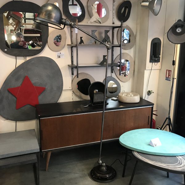 Crée par Domecq Jean-Louis. Édité par "Jieldé" de 1951. Articulée, acier et aluminium, décape et patiné en gris.