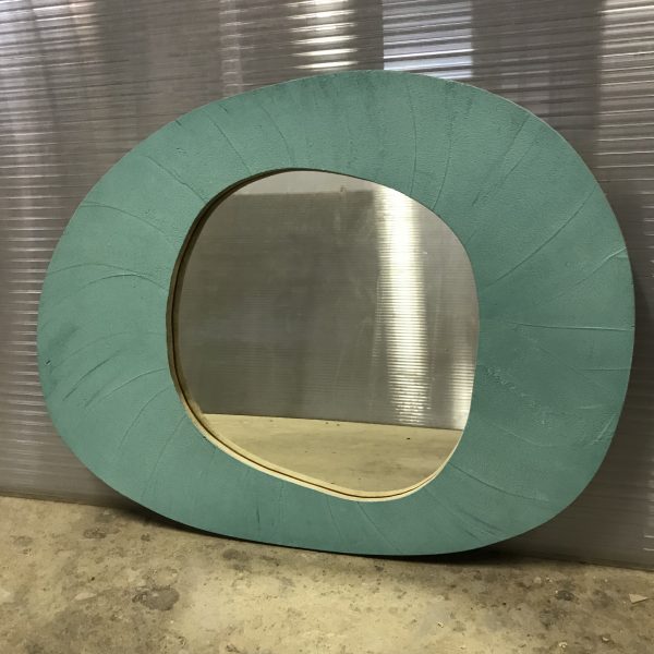 Miroir finition béton ciré sur bois, accroche vertical et horizontale.